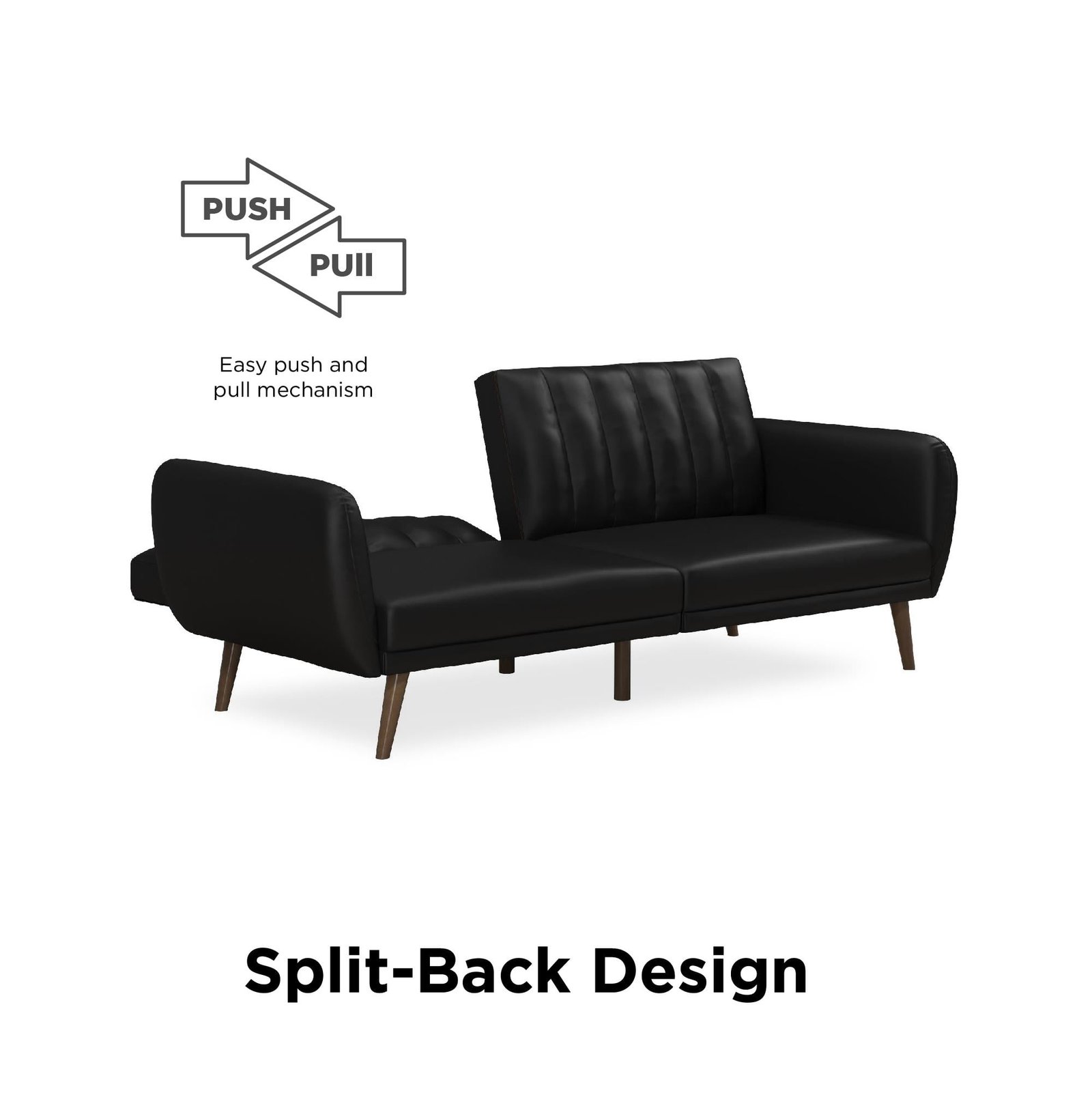 - Small Space Profile: Sitting, lounging, or sleeping, this convertible futon couch sports a folding back that lowers down enabling transition to small bed use for when guests drop by and an easy push-pull mechanism for split-back comfort